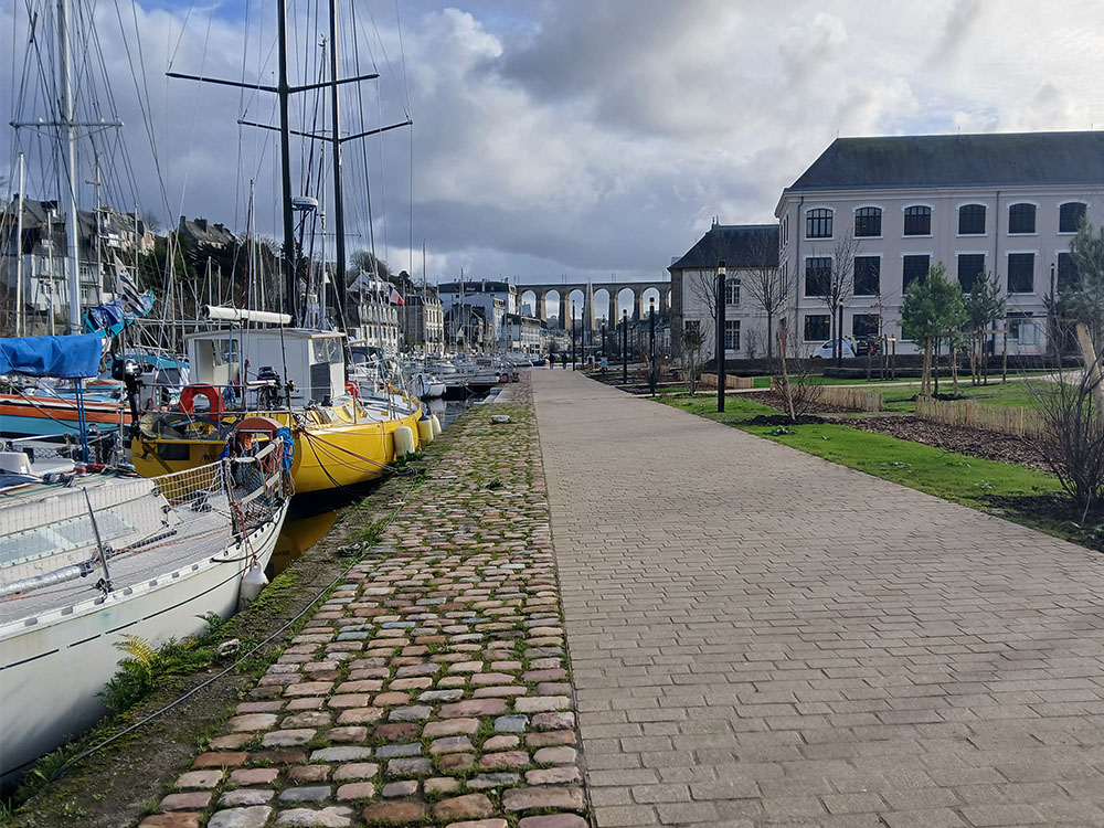 L’Agence AGAP _paysagistes-urbanistes_ (mandataire) + ECR + BMD + YLEX + MH Ligthing , sont retenus par Morlaix Communauté pour l’aménagement du Quai de Léon, des abords de la Manufacture et d’une passerelle piétonne sur le port de Morlaix Travaux: 4 500 000€ HT